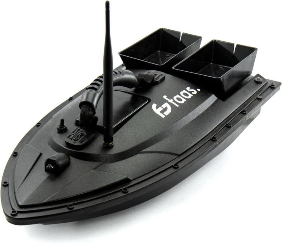 De Faas® voerboot is een betaalbare radiografische voerboot voor het karpervissen. Deze voerboot is voorzien van een dubbele aandrijving, dubbele voerbak, felle verlichting, afstandsbediening met koord en een handige hendel waaraan u de boot gemakkelijk kunt optillen. In beide bakken vervoert deze voerboot met gemak 1,5kg voer. De Faas voerboot kenmerkt zich door zijn intelligente afstandsbediening die tot wel 500 meter een stabiele signaaloverdracht geeft.