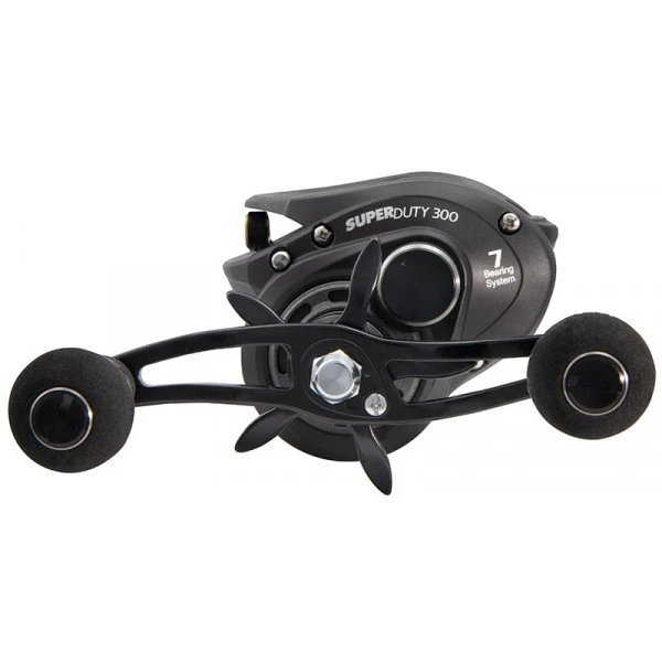 De SuperDuty 300 is echt de ultieme reel die geschikt is voor groot aas, zware lijn, grote vissen in het hele land en over de hele wereld. De SuperDuty 300 is een supersized versie van de originele SuperDuty, met verhoogde lijncapaciteit en algehele brute kracht. De 300 is gemaakt voor het vissen met groot kunstaas en voor het drillen van zeer grote vissen. Denk aan grote snoek, meerval etc. De zoektocht naar een reel die de zwaarst vechtende zoetwatervissen ter wereld kan weerstaan is voorbij.