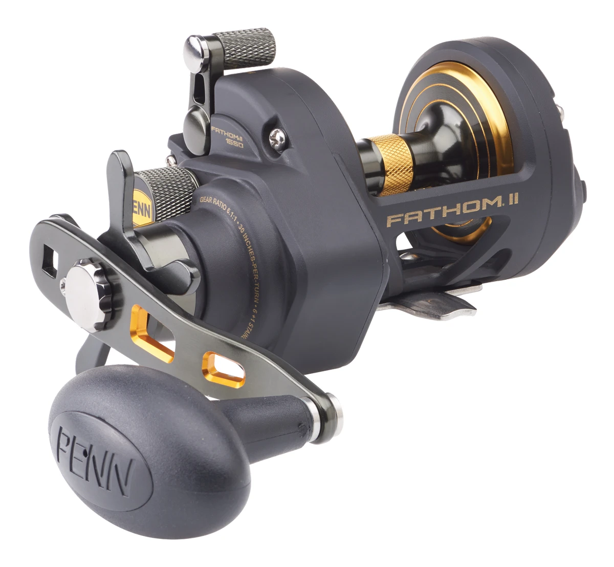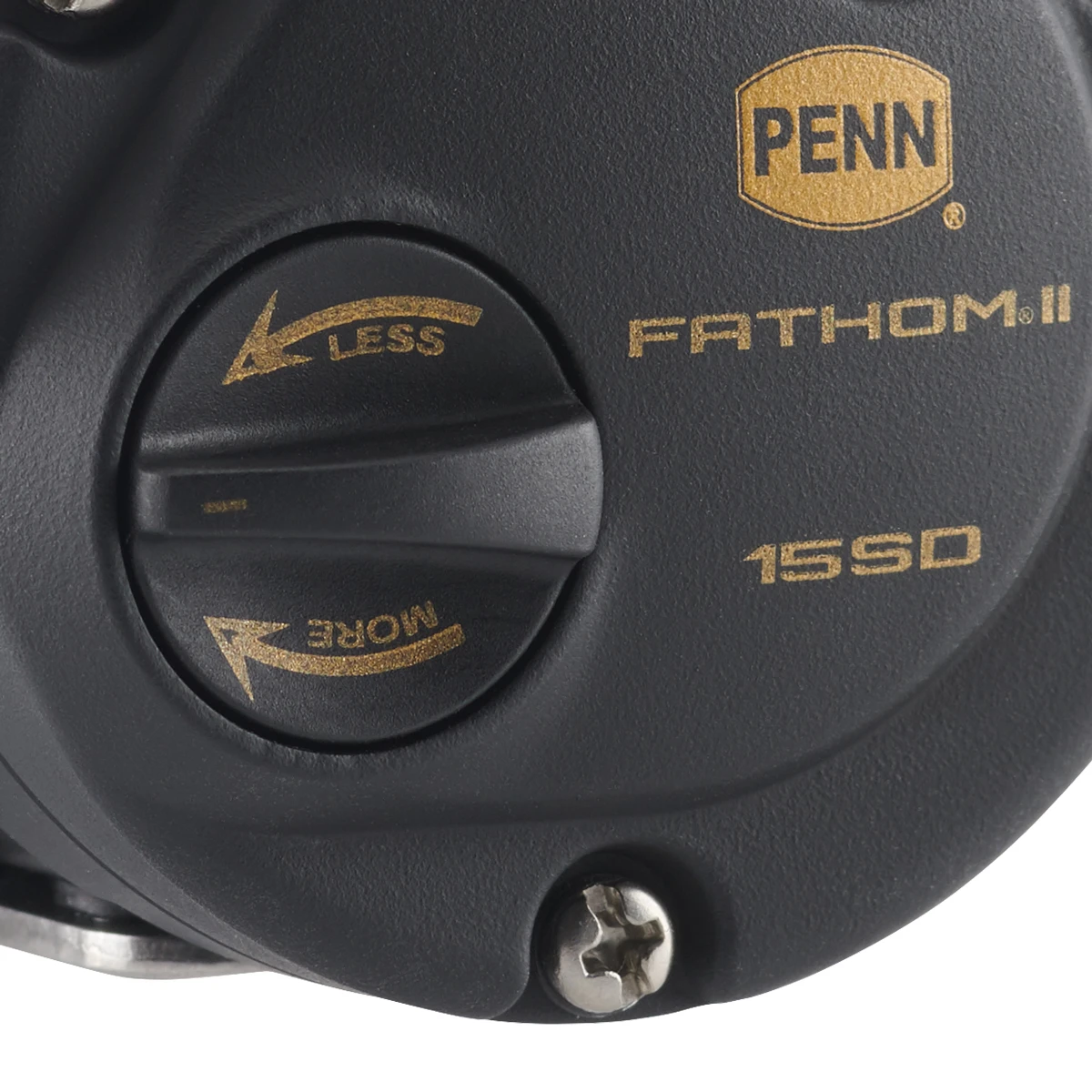De Penn Fathom II Star Drag reel beschikt over een volledig metalen behuizing en zijplaten. Een knop op de zijplaat biedt snelle toegang tot het magnetische remsysteem en dankzij de nauwkeurig afstelbare sterslip ben je de grootste vissen de baas! De as van de Fathom II is speciaal ontworpen voor het maken van verre, moeiteloze worpen.