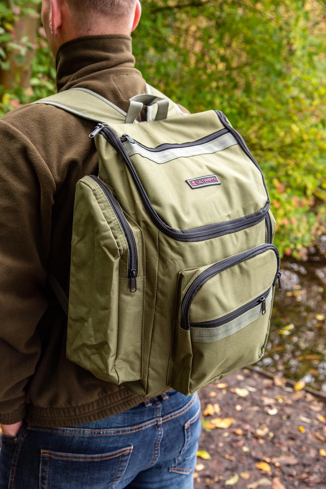 Deze Ultimate Green Rucksack is een robuuste en veelzijdige rugzak, gemaakt van topkwaliteit materialen die je dankzij de verstelbare en comfortabel gevoerde schouderriemen probleemloos kunt dragen. De tas heeft een groot hoofdcompartiment en maar liefst vijf externe vakken zodat je met gemak al je spullen overzichtelijk kunt opbergen en vervoeren. Afgewerkt met heavy duty ritssluitingen, versterking op stresspunten en een ideale rugzak voor de struinende visser.