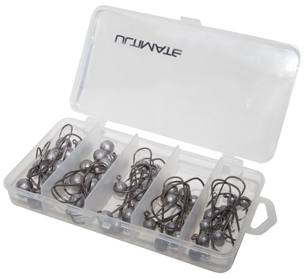 De Ultimate Jigheads zijn ideaal voor het vissen met softbaits. De loodkoppen zijn voorzien van vlijmscherpe haken en een metalen weerhaak om de softbait perfect op de haak te fixeren. Met deze box ontvang je er maar liefst 45, in verschillende maten en gewichten. Zo heb je voor elke situatie een geschikte loodkop bij de hand. De loodkoppen worden geleverd inclusief een tacklebox.